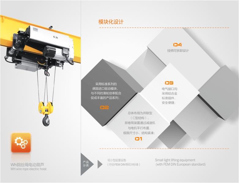 設(shè)備具備結(jié)構(gòu)緊湊、起吊單、雙速、合理有效起吊路程高,運(yùn)作穩(wěn)定等特性,應(yīng)用范圍廣,尤其在剛剛建立工業(yè)廠房中可合理有效提升路程相對高度,能夠減少建筑高度,減少建筑成